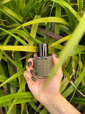 後調 :皮革的粗獷質感、烏木的深沈幽遠與沉香的空靈神聖層層沉澱,如餘燼終將化為沃土。